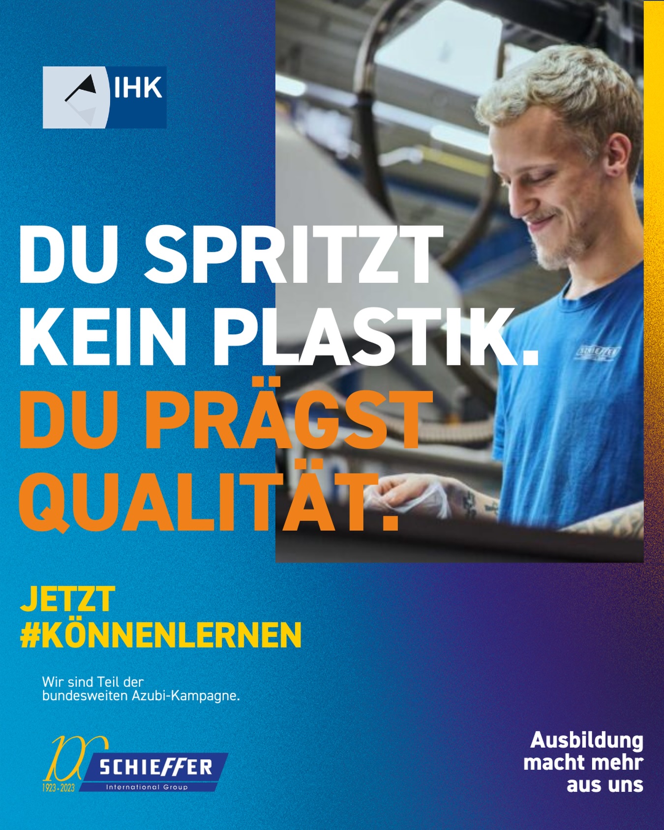 Fachkräftemangel, demografischer Wandel, unbesetzte Ausbildungsplätze – nur trübe Aussichten? Ganz im Gegenteil! Die IHKs sehen darin auch die große Chance, den jungen Menschen in Deutschland zu zeigen, dass Ausbildung und Azubis nie wertvoller waren als heute. Die erste bundesweite Kampagne der IHKs unter dem Motto "Jetzt #könnenlernen" ist eine Einladung an alle Schülerinnen und Schüler, Studienzweifler oder Umsteigerinnen und Umsteiger, das Lebensgefühl Ausbildung zu entdecken.
