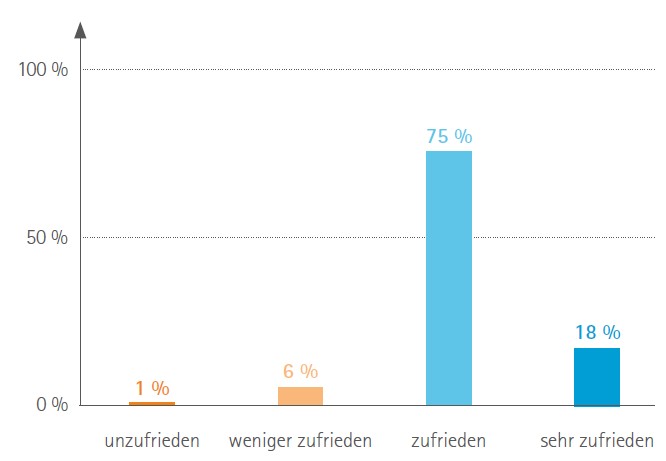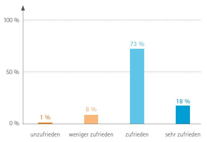 Blaues Feld (unten): Hier ist die Zufriedenheit höher als die Bedeutung. Je weiter unten und rechts ein Faktor liegt, desto gerin­ger der Handlungsbedarf.