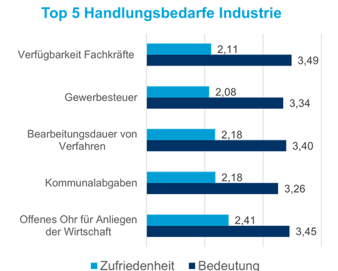• Größte Handlungsbedarfe: Verfügbarkeit Fachkräfte und Azubis